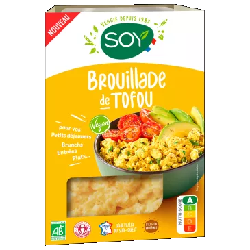 Découvrez la nouveauté SOY: une brouillade de tofu cuisinée, 100% vegan ! Préparée avec du tofu du Sud-Ouest, elle remplace facilement la brouillade d’œufs dans toutes vos créations culinaires salées: petits déjeuners, brunchs, entrées ou plats principaux.