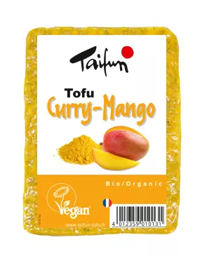 Tofu* 79,1% (eau, soja* dépelliculé(1), agents de coagulation : sulfate de calcium, nigari), oignons* 9,1%, eau, farine de riz*, concentré de tomates*, sauce de soja* (eau, soja*(1), blé*, sel de mer, ferment), sel de mer, épices*, ail*