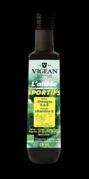 L’alliée des sportifs combine 5 huiles vierges biologiques (olive, colza, cameline, pépins de raisin, cumin noir) et 2,5 % de spiruline française, riche en minéraux et oligo-éléments.